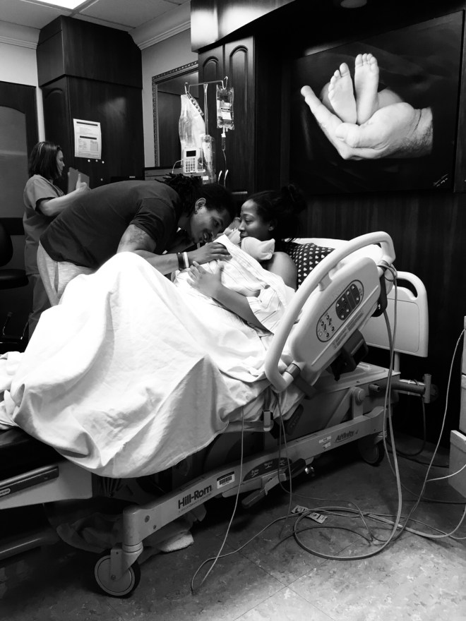 By midnight I was starting to feel an urge like I had to go to the bathroom; it was go time. Some people get mad at me for sharing this but I was laughing, making jokes, having conversations, and face-timing my little sister in between pushes; literally felt no pain. Andre was the best coach ever, and my inner athlete was for sure coming out. I was doing a lot of self-talk to keep myself focused and motivated, the OBGYN and the nurses loved me; I was lowkey doing their job for them haha. Although I felt no pain, I felt like I had endured the hardest conditioning tests back to back to back. After 2 hours of pushing, a 7 pound 5 ounce baby angel entered the world with his eyes open and locked on his mama. The way he looked at me; it was as if he knew exactly who I was.